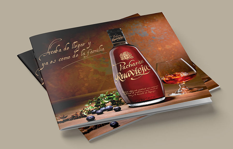 Diseño de marca y packaging para Pacharán Ruavieja. Diseño y desarrollo de la guía de estilo de la marca. Creación de diversos materiales para su lanzamiento.